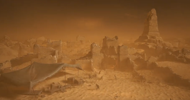 进入到精绝古城,玩家就好像是穿越来到沙漠的边缘。跟随王胖子以及胡八一等人组合成的摸金小队从西夜遗迹出发,然后来到古城腹地。脚下是千年的遗迹,四周则是古老的建筑,每一个场景都会还原原著的细节。例如昏暗的光影,还有风沙的质感,就会将探险的氛围直接拉满,就好像是真的在这座被遗忘的千年古城一样,每一步前行都会充满未知以及挑战。