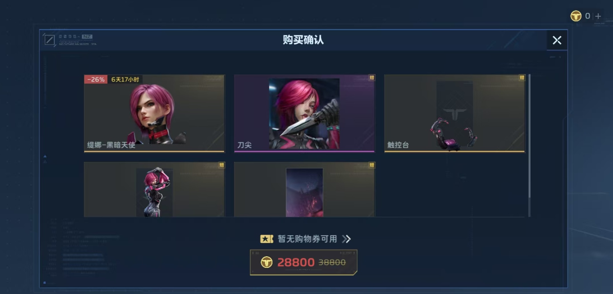 购买该礼包后,除永久解锁缇娜·黑暗天使角色外,还将同步获得多项专属外观道具:头像“刀尖”、底座“触控台”、立绘“黑暗天使”以及背景图“粉墨杀机”。这些内容全部绑定至角色账户,无需额外激活。