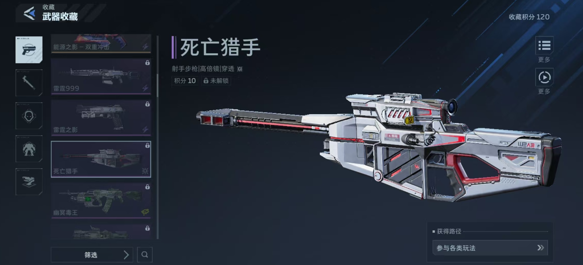 今天为大家详细解析《逆战:未来》中备受玩家关注的高人气射手步枪——死亡猎手。需特别注意:本文所指为“死亡猎手”,并非名称相近的“死神猎手”,二者属于不同武器体系,前者定位为后者的基础进阶版本,获取门槛更低、泛用性更强。