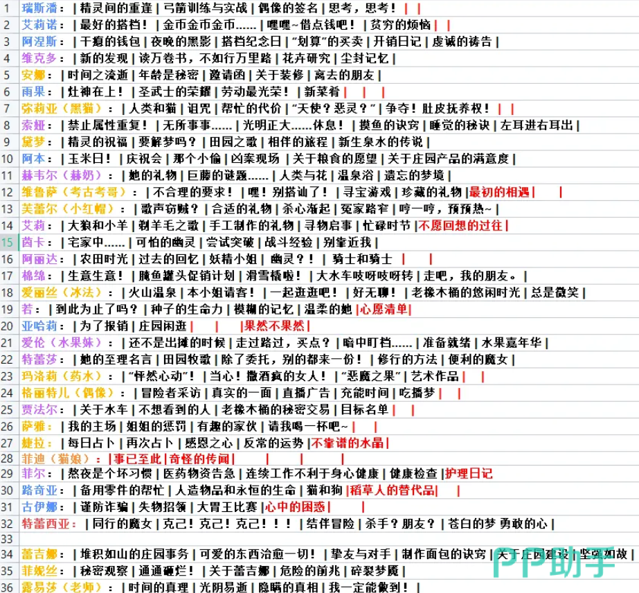 第二组线索中,“时间之流逝”“年龄是秘密”“邀请函”“关于装修和离去的朋友”均指向安娜;“灶神在上”“圣武士的荣耀”“劳动最光荣”“新菜肴”四条线索统一锁定雨果;“精灵的祝福”“要解梦吗”“田园之歌”“相互陪伴的旅程”“新生泉水的传说”则全部关联黛梦。
