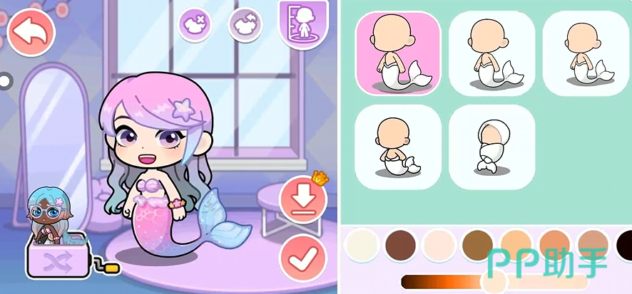 进阶玩家可前往海底主题服装店,该场景提供服饰、头饰、手持物、背部装饰等全品类配件。所有商品按风格标签分类(如“梦幻海洋”“赛博霓虹”),支持关键词搜索与热度排序,便于精准定位目标单品,实现角色形象的深度个性化延展。