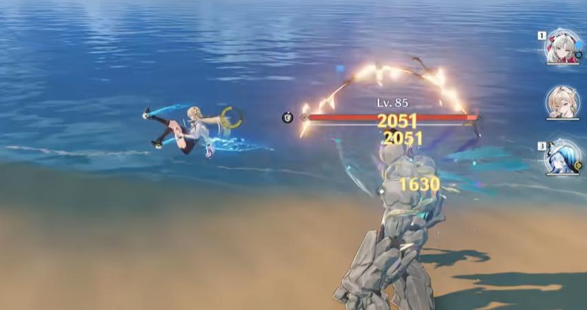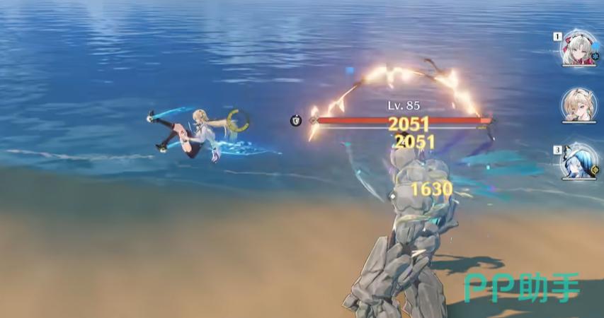 另一关键维度在于生存保障能力:莫宁可显著提升登场角色抗打断等级,提供全队20%防御力加成,并附加3次总计最高30%最大生命值的受伤限制效果,外加1次免死判定机会。该机制在全息挑战、高压Boss战等多段高频伤害场景中具备明确实战价值,有效降低操作容错压力,对中低熟练度玩家尤为友好。