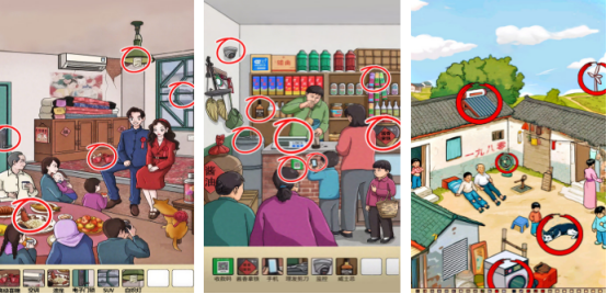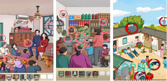 经久不衰的找茬玩法为核心,让大家回到曾经的80年代时,这里的场景特别丰富,比如有小卖部或者是家园环境等等,可能在小卖部中有很多与当时年代不符合的物品,如电子眼以及电子秤等等,大家仔细观察之后,就可以将其中不符合当时年代的物品全部找到,才可解锁更高难度的关卡内容。