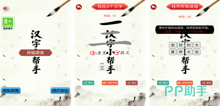 这是款能够帮助大家学习汉字知识的精品学习类闯关手游,内容简单上手能够学习到形形色色的汉字知识,拆解汉字、拼凑成语这些文学方面的玩法更是应有尽有,一系列汉字解谜任务加持新鲜感更是不俗,闯关节奏非常快搭配相当多样的玩法很吸引人,如果你也想在手游世界中感受汉字的魅力,那在汉字小帮手中挑战下绝对不会错哟。