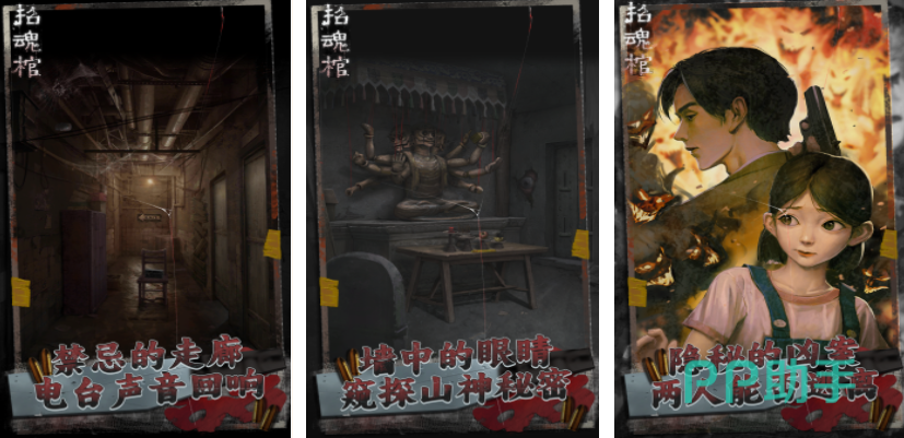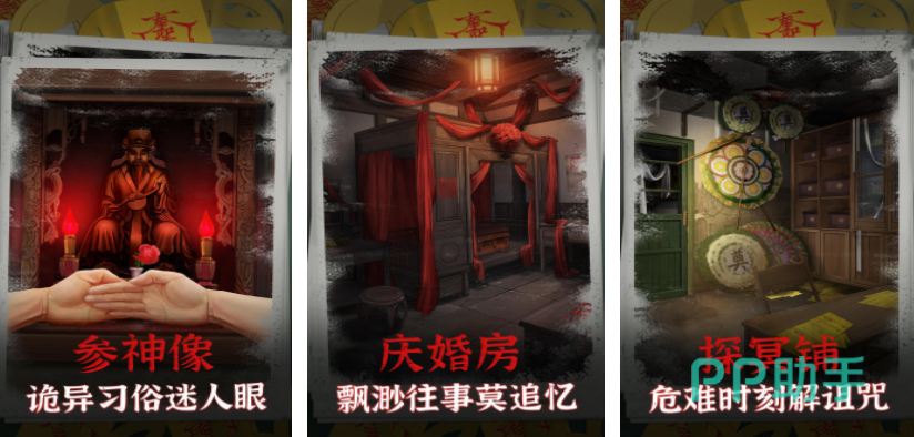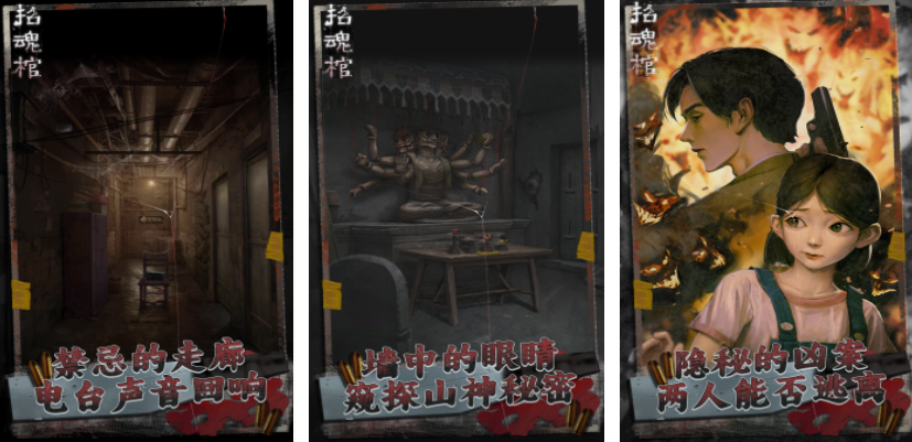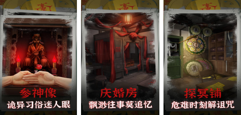 对于场景互动解谜玩家感兴趣的成员,可以进入到招魂棺,游戏里玩家要深入深深了解和村的失踪案件,在这个过程中要和其他的角色互动,通过破解各种五行机关和阵法,收集特定的道具,还需要通过文字阅读,对案件有更深入的了解,随着挑战里面还会有大量的风水符咒元素,成员可以通过解谜找到村民失踪的真相,剧情环环相扣,每次的选择都会触发不一样的结局。