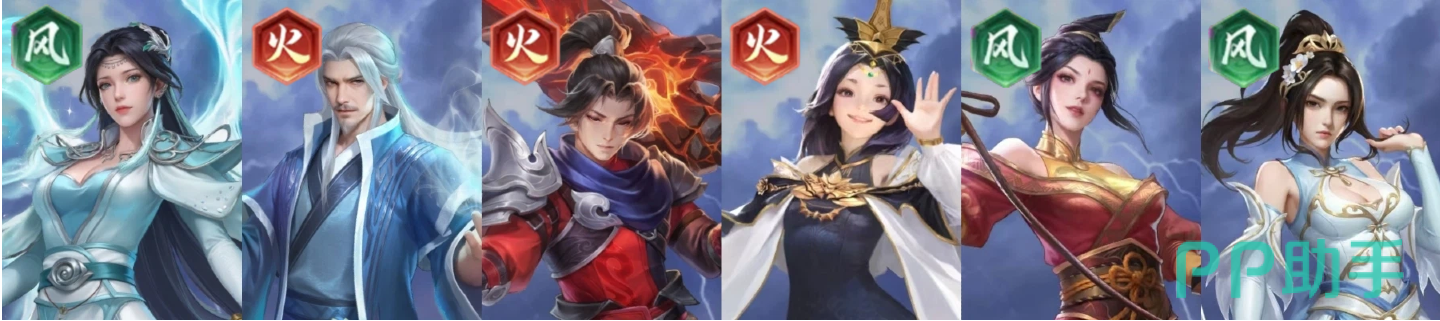 升级要点:云韵替代林修崖担任收割位,具备更强的基础数值与更稳定的再动触发率,单体压制力与清场效率显著提升。火、风双系角色继续承担羁绊构建职能,“双源争锋”加成保持不变。此配置下,第六章主线关卡可实现低损耗通关。