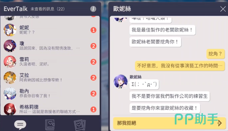【相守圆满】结局强调情感共振与精神协同。该路线要求玩家在独处互动中持续关注欧妮丝的情绪波动,及时识别其心理状态变化;当分歧出现时,需主动选择契合其价值观的回应方式;若遭遇理念冲突,则应通过共同作战强化信任纽带。值得注意的是,欧妮丝初始性格偏内敛封闭,唯有通过稳定共情与理性支持,才能促使其完成内在和解,最终达成双向奔赴、长久相伴的终局形态。