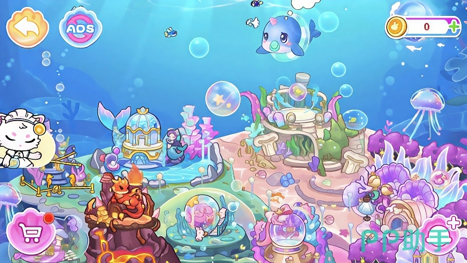 人鱼海湾采用模块化场景架构,涵盖多元功能空间:如以贝壳与珍珠为装饰元素的美人鱼主题餐厅、悬浮于海流之中的水晶穹顶美人教堂、以及定期举办水下庆典的派对珊瑚礁区。所有场景均通过地图界面图标直观呈现,点击即可瞬移进入;角色支持自由拖拽移动,无路径限制。同时,系统内置双人协同交互机制——当两名玩家完成指定动作组合(如共舞、托举、镜像摆姿等),将触发专属剧情动画与动态特效,强化社交参与深度。