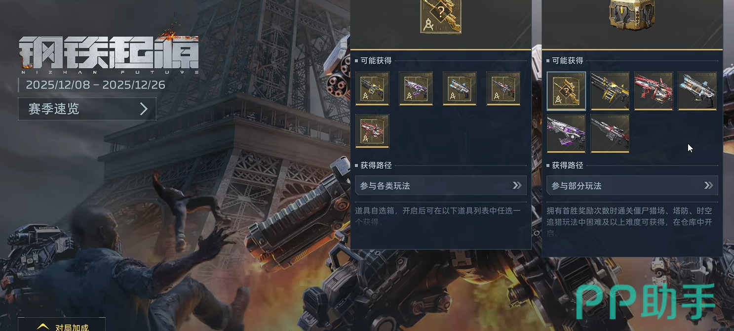 “钢铁轰鸣”属于赛季限定金色武器,主要通过参与当前赛季任务系统获得。核心获取方式为领取【首胜宝箱】——该宝箱每日可领取一次,每次固定产出3个“钢铁轰鸣”专属武器碎片。碎片可直接用于合成,亦可在碎片仓库中按比例兑换其他枪械部件。