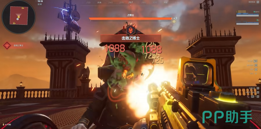 第二位首领为Z博士,镇守大都会副本最终关卡。战斗发生于封闭圆形平台,玩家行动受限,Boss则通过注射病毒完成形态跃迁——进入巨型化状态。该形态下共呈现三种核心攻击模式:其一为直线冲撞,Boss沿平台直径反复冲刺,路径固定且有明显起手动作,可通过横向位移预判规避;其二为毒液喷洒,落地前地面生成红色预警圈,持续数秒后释放持续伤害区域,需及时脱离红圈覆盖范围;其三为环形激光扫描,Boss召唤多道动态激光绕场旋转一周,轨迹具有规律性节奏,熟悉其间隔与转向节点后可精准穿插躲避,该技能具备即死判定,严禁接触。