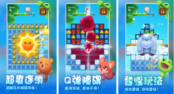 超经典三消类,将三个或者数量更多的相同元素连接即可消除,有超丰富的特色道具,可任意滑动屏幕交换小动物头像,将三个或者更多动物面连成一条直线,主要的目标就是完成指定任务,收集特定物品最终成功通关,目前已更新了超过9000多个关卡,依旧在持续更新中,玩家可不断攀爬藤蔓,一路攀爬时,也能看到其他好友的动态。