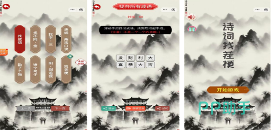 首先主页面中将会看到多个不同的选项,包括诗词闯关或者是成语挑战等等,将各种古诗词全部集结在一起,从一年级再到六年级所有的古诗词全部集结,挑选自己喜欢的模式之后就可开启全新的闯关之旅,比如在成语挑战中将会呈现出错综复杂的单个汉字,而这些汉字的位置都被随机打乱,大家仔细观察,按照自己所学的知识,从中挑选到正确的成语,只要将隐藏的成语全部找到即可,成功突破难关。