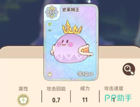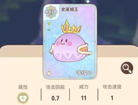 最后为大家介绍的就是史莱姆王,史莱姆王当前他在噜咪当中是作为神兽标签的角色,而且他自身的克制效果上面不跟其他的元素属性一样,它是没有基础可以克制类型的元素,因为它在自身的共生增幅效果上面是有一定的影响特性的,目前它属于任意属性,依靠当中的史莱姆伙伴俩改变自己的元素,如果配置的是其他元素的史莱姆,那么这里可以给史莱姆王带来的就是相应元素的增益能力,所以它的技能效果上面不依靠各种技能来进行叠加,而是根据他携带的这个史莱姆来进行攻击,一般情况下召唤者莱姆攻击当前的敌人,那么在己方没有一只史莱姆倒下的时候,他还会有50%的伤害提升效果,所以是史莱姆王作为队长的话,一般情况下可以带来的一些献祭流打法都是非常出色的。