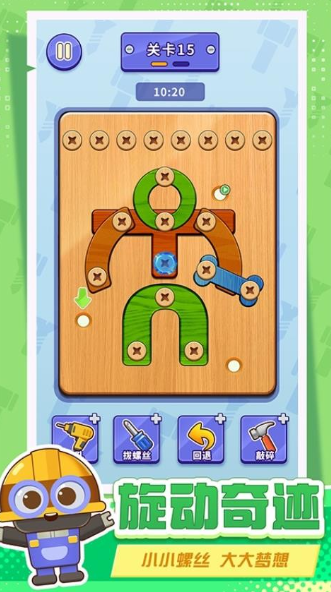 需要玩家把关卡里的钉子全部清除掉,就可以把木板拆下来过关,过了关就能解锁新的关卡。不同关卡里的木板样子都不一样,我们需要先看看木板的形状,再找合适的拆除机会,游戏分了不同的难度,找对技巧把钉子去掉就可以顺利通关、关卡里还有各种道具能用,比如回退和敲碎这些,用对就可以让闯关变得更轻松了。