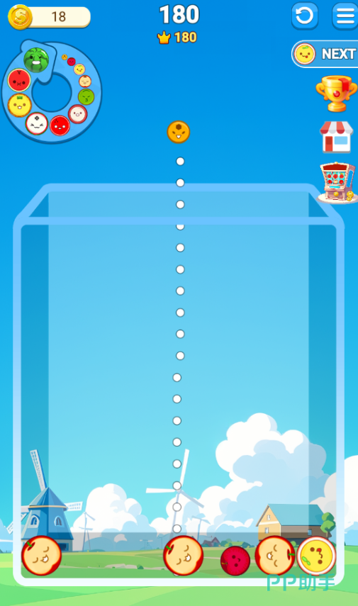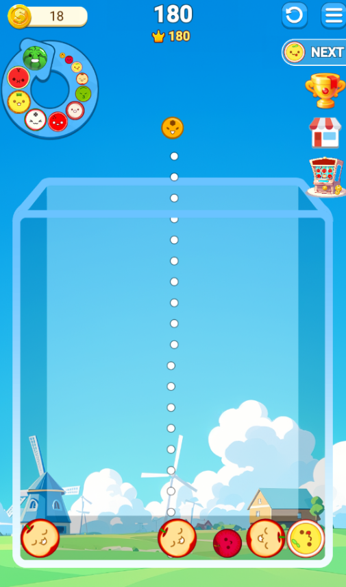 一款以水果为主题的休闲小游戏,把合成和消除两种玩法叠在了一起。玩家可以把相同的水果拖到一起,让它们碰一下就可以变成更大的水果,慢慢合成西瓜。如果布局合适还能触发一连串的消除效果,游戏里还有一套成就玩法,记录大家通过了多少关,合成过哪些稀有水果,让我们在玩的过程中可以看到自己的进步。