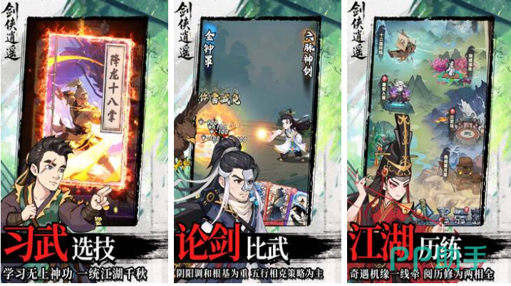 本作是融合了许多武侠小说剧情的国产水墨风格回合制手游,论剑比武的战斗设定配以回合制元素毫无违和,江湖历练的主题玩法像极了进入真实的武侠世界,比武选秀和转职强化等基础玩法也是齐备,无上神功自由学习可以轻松感受到武侠手游的乐趣,地图刻画水彩立体有一种梦幻般的沉浸感,逍遥好玩的武侠世界历险体验刺激性更是不俗。