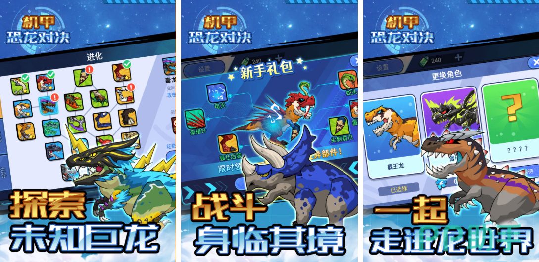 这款多人联机玩的恐龙题材手游是纯粹的SLG主题作品,恐龙这类巨兽的加入带来的压迫感也很不错,可以通过吞噬进化的方式强化恐龙的作战能力,可以进入远古时代对各种恐龙实行抓捕,然后使用机械改造的方式让恐龙快速成长,支持联机作战可以让多个玩家控制恐龙参战,满屏巨兽的策略战斗场面看上去更为刺激。