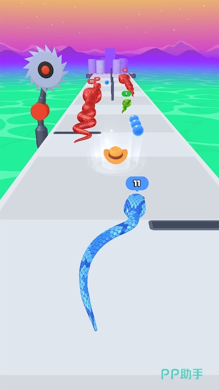 赋予了贪吃蛇新的生命力量,它将会在各种跑道上一直前行,吞噬掉更多的物体,完成在平台之间的跳跃,尽管关卡中设置了很多的障碍物,小蛇的灵活性,也能够成功的避开,墙壁,移动的平台都会随时出现,在吞噬过程中小蛇的身长会不断增长,并且还会获得特殊的能力,五颜六色的小蛇皮肤也提升了闯关的趣味性。