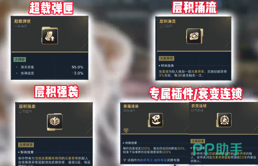 第4个是幽冥毒王,这把枪的输出能力要比之前的这几个稍微低一些,但核心的优点就在于强调团队的配合,可以给队友带来强大的辅助增益。在团队中也是核心的优势,插件方面建议选择层级涌流,还有杀戮连锁。一方面可以延长持续的时间,更快的消耗敌人的生命值,另外一方面在叠加之后也会拥有可观的伤害,可以带来更加出色的辅助能力。