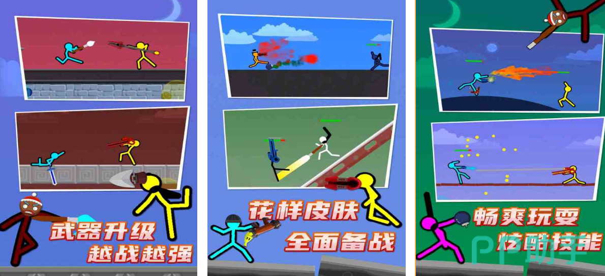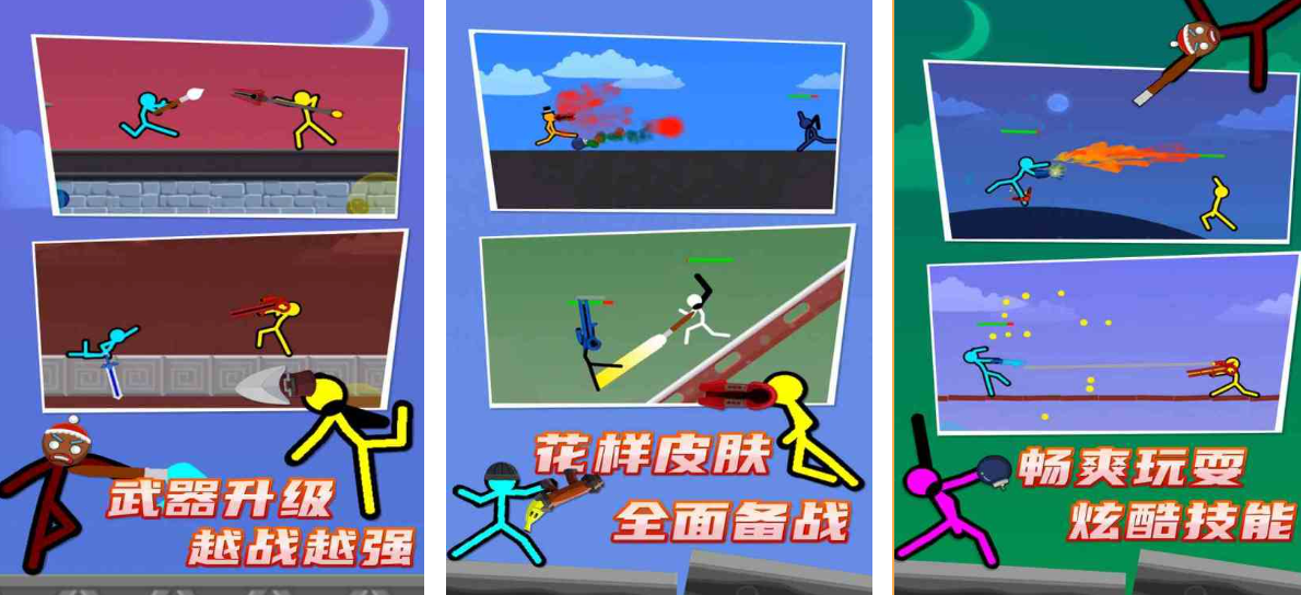 《火柴人对决》是一款以极简的操作和爆笑的物理博弈为特点的休闲对战游戏,它抛弃了复杂的数值坑位,把主要的精力放在了火柴人的软绵绵而又变化莫测的物理碰撞上。玩家在关卡中需要用各种各样的冷兵器或者高科技装备,在错综复杂的平台上用推搡、刺击或者射击的方式把对手置于死地。该作最迷人之处就是它十分不稳定且复杂的重力环境和丰富的场景机关,有时候一个小小的失误反而可以产生出意想不到的反击。