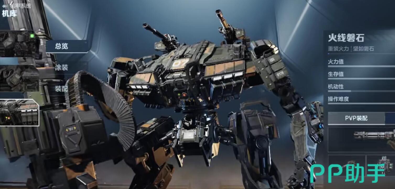 火线磐石重装型机甲侧重生存能力与持续压制效能。其庞大机体结构带来天然容错优势,适合承担前排抗压与火力牵制任务。主武器单级电磁轨道炮支持蓄力射击,可打出全机甲序列中最高的单体伤害,具备一击秒杀关键目标的潜力。挂件组合推荐空空导弹(增强空中威胁)与等离子护盾(提升持续承伤能力),在PVP据点防守及PVE Boss攻坚阶段均能维持稳定输出节奏。