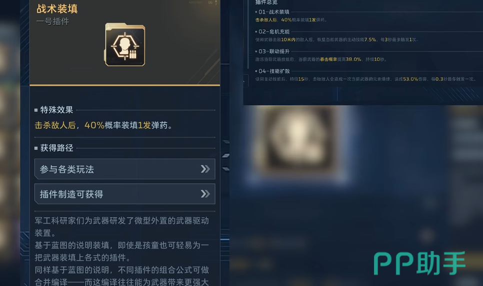 在配件搭配方面,“装束装填”插件与黑火黑克勒高度契合。该插件触发条件为击杀敌人后概率返还子弹,有效缓解了该武器高射速带来的弹药消耗压力。在长时间连续作战场景下,该效果可显著延长持续输出窗口,避免因换弹中断节奏,从而提升整体续航能力与实战容错率。