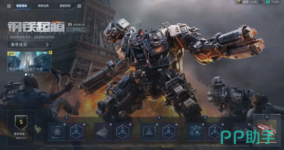 返回主界面后,建议尝试两局其他模式(如塔防或PVP训练),达成等级3后即可解锁“钢铁的起源”——即赛季通行证系统。该模块是全游戏养成体系的核心枢纽,直接关联天赋解锁、武器获取与长期成长路径规划。