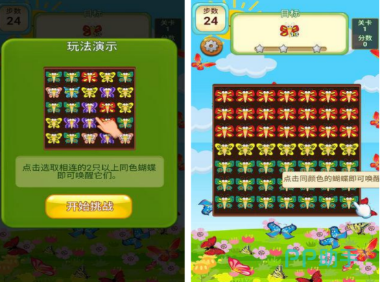 游戏当中还有超多各种漂亮的蝴蝶,也是以非常好玩的消除玩法为主,涵盖超多的关卡,利用点击屏幕相同颜色的蝴蝶,连接两个或更多颜色的蝴蝶就可以进行消除。不断收集以及唤醒足够数量颜色的蝴蝶以后,玩家就能完成目标分数的挑战。在画面上仿佛进入了拥有着各种颜色的花丛中一样,要尽可能的使用最少的步数来完成挑战。