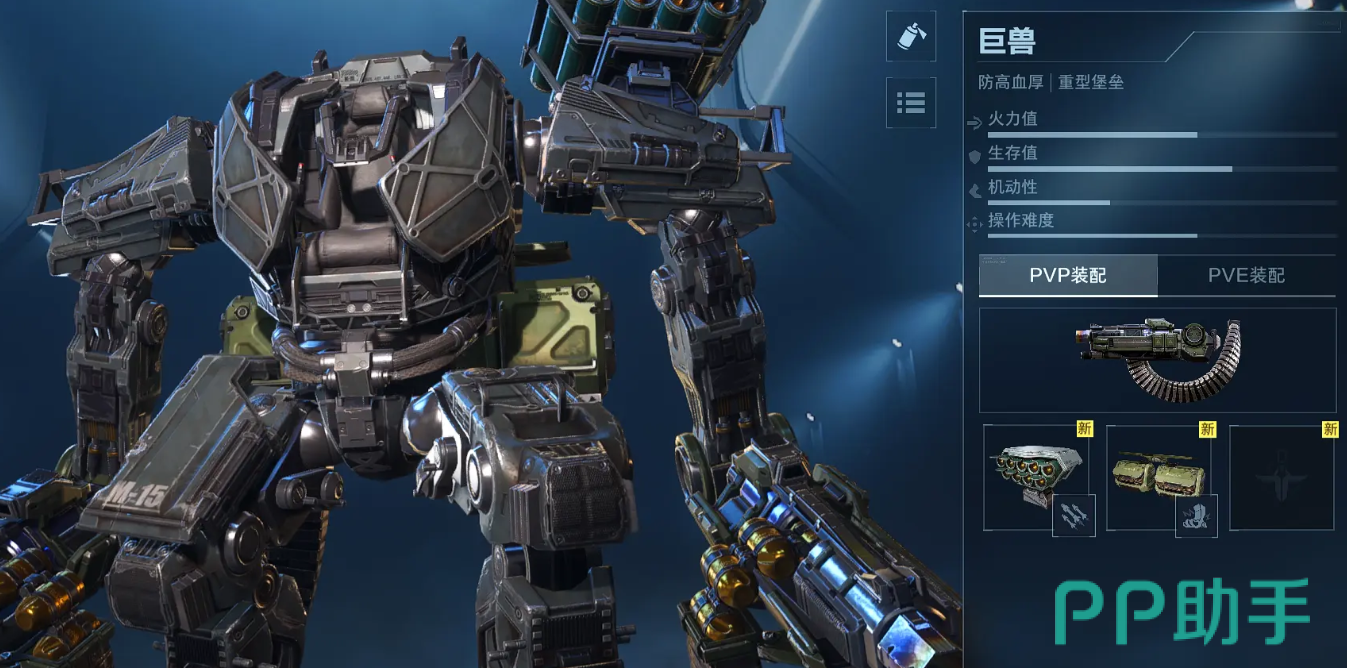 当前开放火线磐石、暴风、巨兽三款可选机甲,性能侧重各不相同:巨兽具备最高基础血量与装甲强度,但攻击距离受限,主武器加农炮虽附带范围伤害,却存在明显射击间隔,命中依赖精准预判,上手门槛较高;火线磐石主打持续火力压制,配备能量护盾可格挡飞行物,兼顾输出与生存能力,但移动速度与转向灵活性偏低;暴风则以高机动性见长,支持自动瞄准或无限能量条两种核心模式切换,便于灵活走位与快速响应,综合容错率最优,尤其适合新玩家建立操作信心。