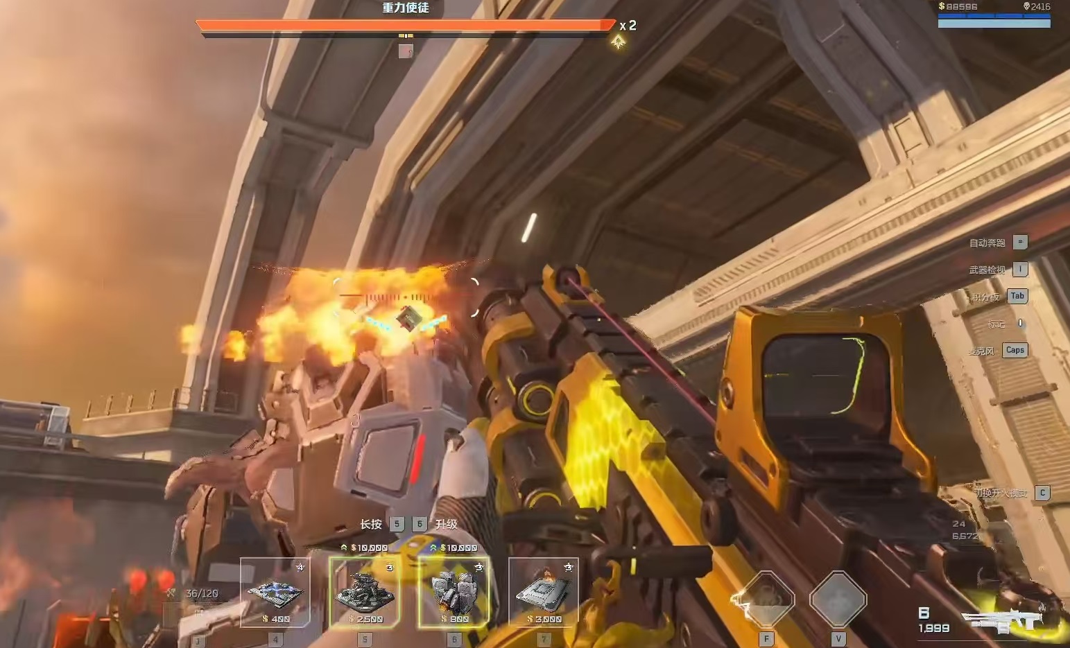 关键机制在于部位破坏策略。重力使徒的重力控制系统高度依赖其躯干各模块,包括双臂、肩甲及背部核心组件。其中,击毁其手臂处的重力装置将触发“重力失效”提示,此时其对自身悬浮状态的控制将短暂中断。抓住该窗口期,立即激活巨型弹板陷阱——失去重力抗性的BOSS将被直接弹飞,并坠入地图中央深渊,实现一击必杀。