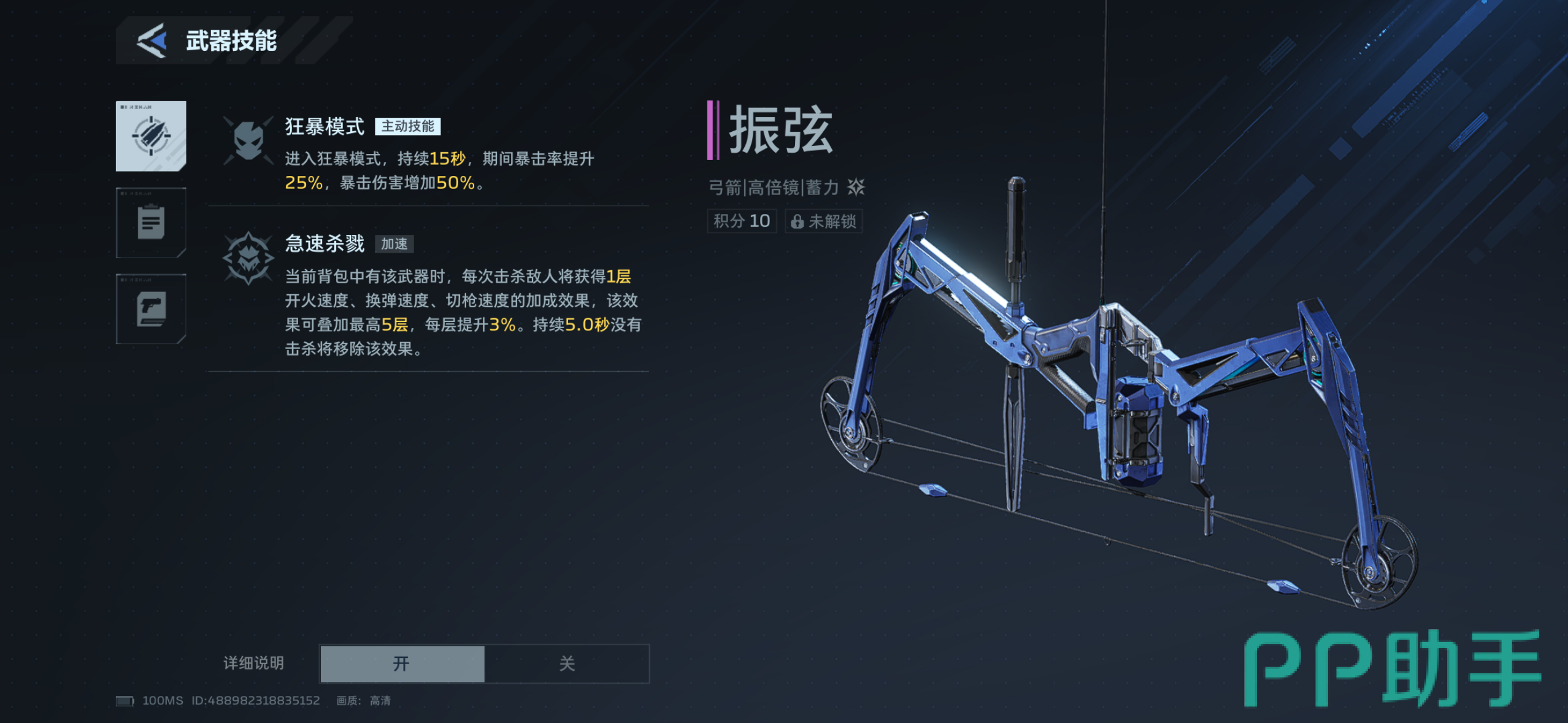振弦定位为战术型副武器,主要通过游戏内常规玩法产出的补给箱获取,亦可通过“跃迁秘藏”(普通品质)稳定抽取。其核心机制分为两部分:主动技能触发后进入狂暴状态,提升基础输出效率;被动效果则随命中目标数量递增,同步加快射速与换弹速度。该设计使其在中远距离穿透射击场景下表现突出,尤其适合后排持续压制,对操作精度要求较低,新手可快速上手,也便于在资源有限条件下长期培养。