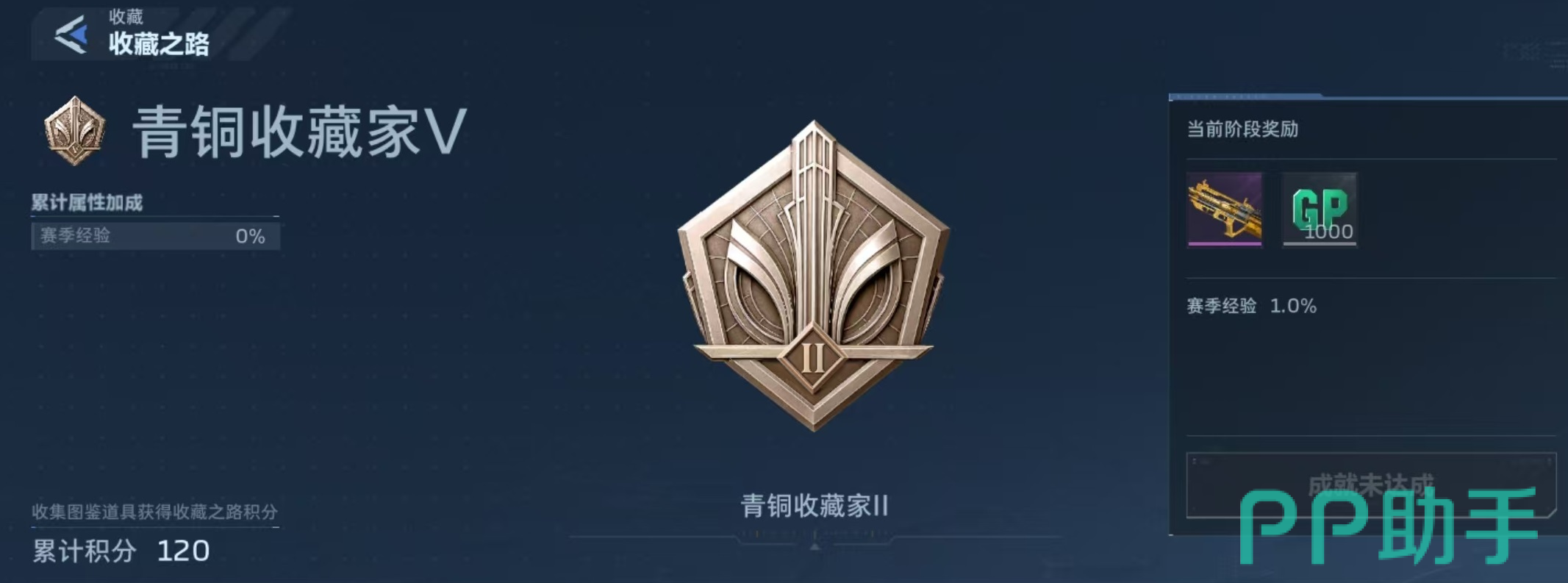 每获取一件永久归属的物品,均可按其品质折算对应积分:金色品质武器计20分,紫色品质计10分,蓝色品质计5分。当积分达到各阶段阈值时,即可晋升收藏家等级并领取阶段奖励——例如青铜收藏家四级可获得GP点与NZ卷;二级则可兑换限定武器“黄金Z型步枪”。