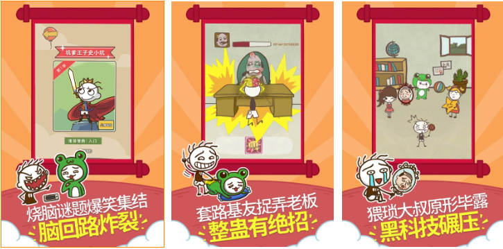 这是款将很多的网络热梗汇聚一堂的闯关解谜手游,关卡设定众多再结合各种搞笑画面代入感绝佳,网络热梗与搞笑气氛的结合自然毫无违和感,解谜主题的玩法操作理念也简单上手,脑洞大开的闯关性质也是这款佳作的亮点,关卡中涉及到的热梗都不一样会让朋友们脑洞大开,谁才是最强大的爆梗王呢!