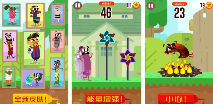 《奔跑吧,香肠》的主角虽然是香肠,但可以随意更换不同类型的皮肤,而玩家的职责就是以第三人称视角来控制香肠的方向。游戏过程中长按可为香肠加速,松手则会减速,而且奔跑的过程中还有相当多的陷阱,比如切片机和烤箱等,都需要一一避开。