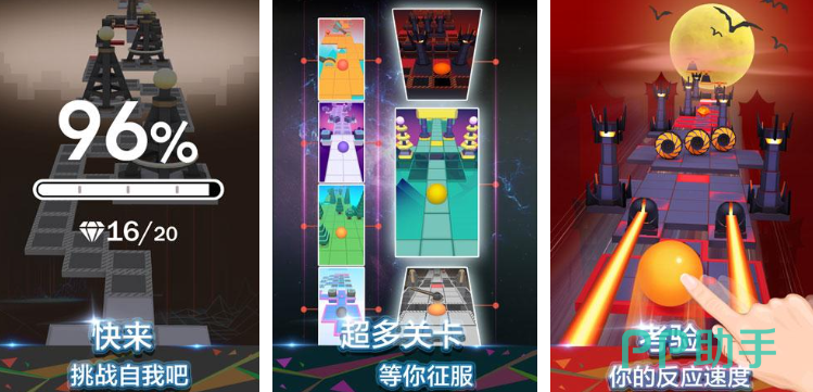 《滚动的天空》拥有色彩缤纷的小球,而玩家则需要操作这些小球来进行闯关,且闯关的过程中也有各种陷阱以及障碍物需要规避。目前有上百个不同主题的关卡可以挑选,玩家在滚动小球的过程中还可以收集钻石和金币等。手游采用的是3d图形技术,每个关卡都配有相应的bgm,玩家可以根据BGM来调整小球的速度以及跳跃的时间,以达到最佳的效果。