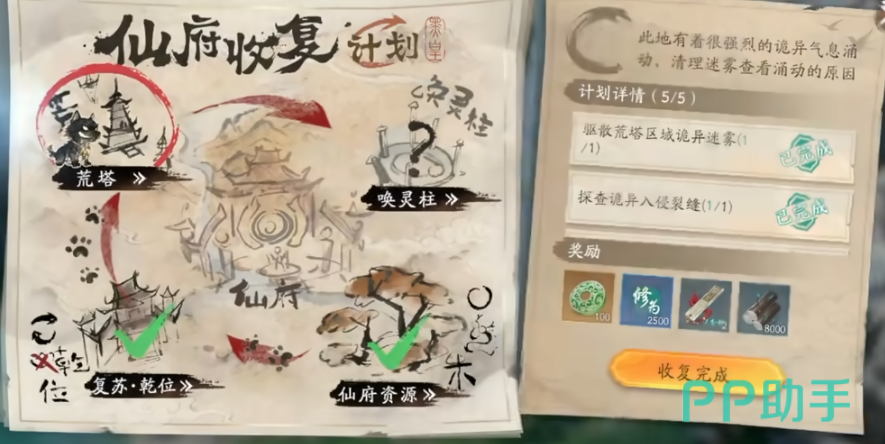 各方位阵法并非初始全部开放,需满足明确前置条件方可解锁,例如角色等级达标、灵气储备达到阈值等。游戏内置引导系统会在初期提供清晰任务链,帮助玩家循序推进阵法修复进度。每项玩法产出的资源(如阵纹碎片、灵枢晶石)均直接关联主殿升级所需材料,形成闭环养成逻辑。