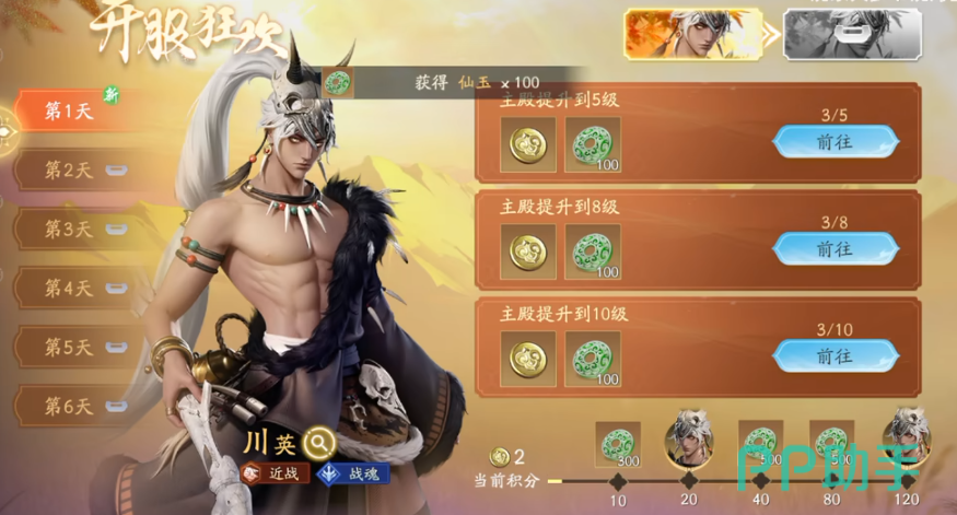 成功修复指定方位阵法后,将同步提升角色战斗力、灵气上限等关键数值,并加快主殿整体升级速度。主殿等级提升后,可领取对应等级奖励;当累计获得120积分时,将永久解锁强力近战英雄川英,显著增强队伍实战能力。