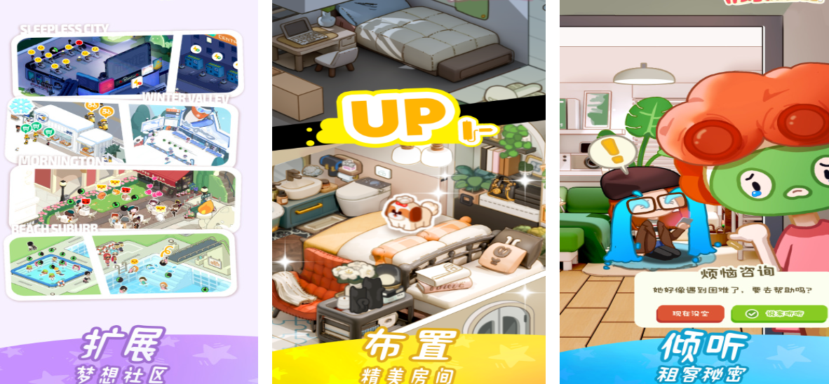 《房东模拟器》是一款将地缘不动产管理与租客心理博弈深度耦合的旗舰级作品。游戏创建了一个烟火气息浓厚的公寓社区,玩家扮演拥有整栋物业的房东,对房间户型进行精雕细琢、公共设施战略性投入从而提高社区整体评价。该作最出彩的地方就是其极为考究的租客画像系统,玩家要按照不同租客的职业习惯、社交需求,在招租时进行精准的匹配和引导。新加入的漏水报修和邻里矛盾等随机生活事件,需要玩家在成本控制和租客满意度之间找到微妙的平衡。