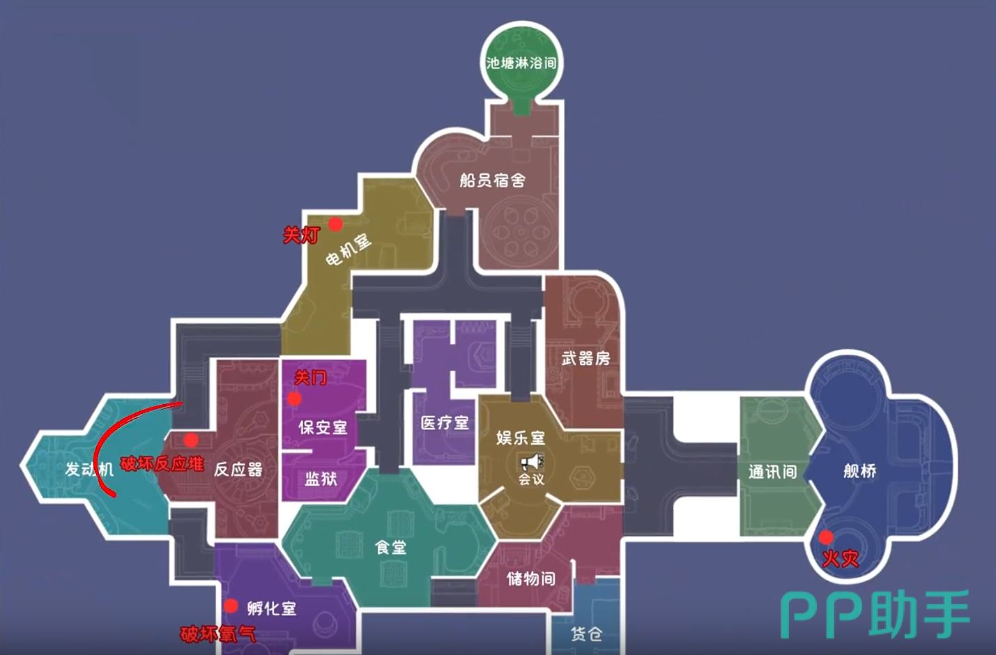 每项破坏均会触发对应紧急事件。当“破坏反应堆”被激活后,倒计时开始,若未在限定时间内修复,鸭子阵营直接获胜;此期间禁止召开紧急会议,但允许报告尸体。同理,“火灾”事件若未及时扑灭,也将导致鸭子胜利,且同样禁用会议功能,仅支持尸报。