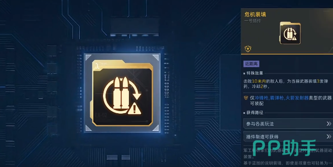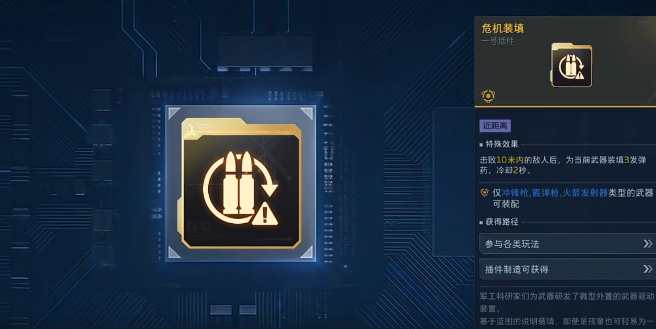 第1个插件槽应该选择危机装填,这个插件就会拥有出色的续航能力。只要是在10米的范围内击杀敌人,就可以自动装填三个弹药,在激烈的战斗中也无需担心。第2个插件槽选择多重击反,可以在玩家每一次开火时都能给主动技能充能。第3个插件槽选择近距增福这一个插件就可以带来增伤的效果,距离越近,那所增加的伤害幅度也就更加的明显。最后一个就选择终极插件,一旦在装备之后伤害就可以翻倍,拥有更好的爆发能力。在面对高血量的BOSS时,也可以轻松的打出爆炸性伤害。
