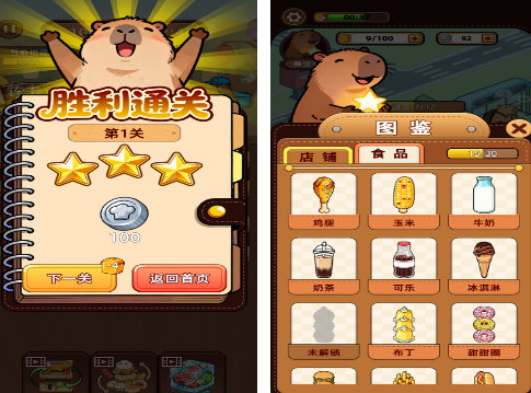 游戏属于一款充满着可爱风格的,尤其是圆滚滚的卡皮巴拉,更成为了这一款游戏的一大亮点,将进入温馨的小城,拥有治愈的餐厅环境,无论是与里面的可爱小动物卡皮巴拉在厨房里面制作美食,满足各种小动物顾客的需求。还融入了现实生活中各种美味的饼干、蛋糕,甚至是烧烤等,通过不断的解锁各种特色的店铺美食以后,成为真正的大亨。