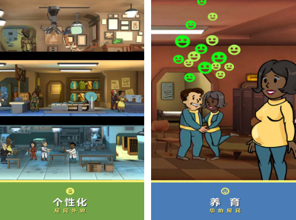 虽然这只是以辐射为主题的单机手游,不过却是画面品质上极高的,其中就包括场景是以3d为主,不过人物却采用的是2d的设计,通过这两种独特的画面结合在一起的方式,让大家享受不一样的特色。整体的场景建模非常的精细,通过进行拖拽的这一种方式,就可以控制着角色,生产资源,使避难所能顺利的运行。
