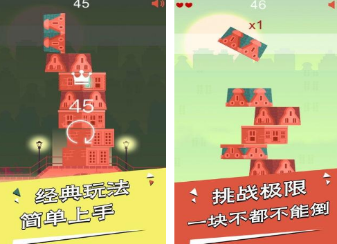 利用房子堆叠的方式挑战极限,使每一个方块都不能够倒下的情况下,就可以完成挑战,获得相应的奖励,具有经典的玩法,简单容易上手。在点击开始游戏以后,就能在这里面打造漂亮又精致,充满着清新风格的房屋,带来趣味性的体验。游戏能够利用快速开启的方式享受欢乐的时光,利用点击屏幕掌握相应的技巧就可以完成堆叠。