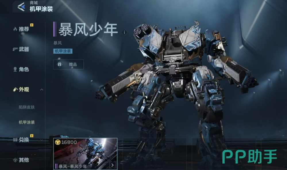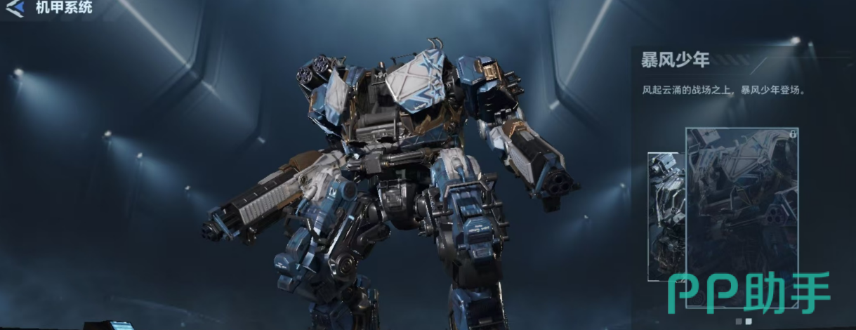 目前唯一可获取的定制涂装为“暴风少年”,采用高饱和度天蓝色主色调,辅以流线型光效纹理,在保留机体原有结构特征的同时,显著增强未来科技氛围。该涂装仅可通过商城【外观】分类下的专属礼包直接购得,无其他替代获取渠道。需注意:除暴风机甲外,其余已上线机甲暂未开放涂装支持,此为当前版本阶段性设定,非永久限制。