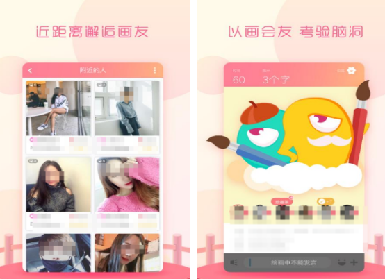 遇到很多灵魂画手,一个人绘画,另一个人猜词玩法为主,无论是男和女之间,或者是在这里面想要邂逅各种年轻的小伙伴,都能让你邂逅超多同城的玩家。支持以画会友,在两个人畅玩的时候,当然也考验彼此之间的脑洞。在附近的人中,也能让你了解有哪些离自己比较近的好友,也支持设定好看的封面,帮你顺利脱单。