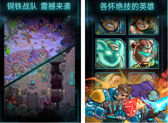 就是采用卡通的风格,需要展现出策略才能够完成完成任务,组建厉害的钢铁战队。讲述的就是进入了游戏的环境当中以后,遇到了很大的困难,需要做好一系列的准备,才能解决危难降临的局面。有过目难忘,独特的画面风格,涵盖超多的英雄角色,他们都有不同的技能,可以使用丰富的武器,带领着钢铁战队,与外星的敌人进行较量。