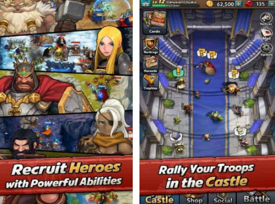 这是由国外所打造,拥有着欧美卡通风格人物的rts手游。整体的操作方式比较简单,玩家单手就能够控制着里面的角色,在庞大的战场当中,与各种各样的对手进行较量。而在人物角色上,除了有童话故事当中的国王勇士,甚至还能够看到很多的巨龙宠物,他们都能够在战斗的时候发挥强大的威力,带来热血的战斗画面。