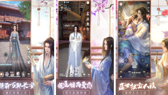 以唐朝为背景,同样也采用3d女性向古风恋爱,完整的剧情设定,采用3d人物建模与场景设计,匹配超过10段cg动画,营造出相当浓郁的古风舞台剧,将性格迥异的男性角色呈现得非常别致,有风流倜傥的,还有孤高清雅的。通过约会或者赠送书信的方式提高好感度,解锁专属剧情,触发羁绊故事。