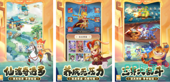 受欢迎的养成类作品,老少皆宜的特色画风,再匹配靓丽多彩的场景地图,将如梦如幻的西游故事完美呈现,加入敦煌壁画、水墨画风,传统的元素与艺术种种特色细节效果充满古典韵味。有离线推图及自动挂机模式,在离线状态下也能够刷资源,上线就可直接领取。