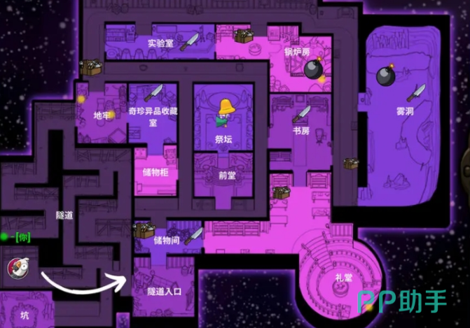 锅炉房、地牢与实验室等区域兼具战术价值与隐蔽属性:锅炉房内置火炉,支持尸体即时焚毁,规避转移痕迹;地牢结构纵深且多岔路,适合作为伏击或暂避据点;各区域均设有限定身份可进入的隐秘通道,便于关键角色实施静默观察与信息收集。